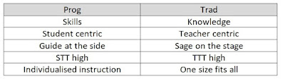 As the trad/prog debate rages online and particularly on twitter, some have pointed to China's impressive ranking on the PISA tests and suggested that we could learn a thing or two about teaching from listening to Chinese educators who stick to very traditional teaching methods. In simplistic terms the approaches differ in the following ways: